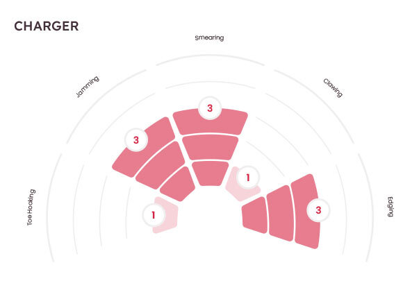 Each climbing shoe performs differently with regard to different foot techniques, depending on the materials, technologies and construction used. Here you can see at a glance to what extent the respective Red Chili model is suitable when it comes to standing on friction (smearing) or on edge (edging), setting a toehook (toe hooking) or footjam (jamming) or creating more friction in the overhang by enclosing structures with a claw movement with your toes (clawing).